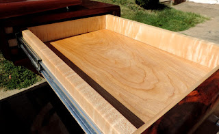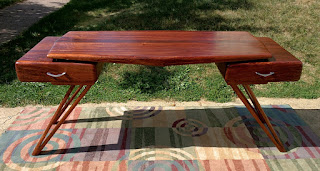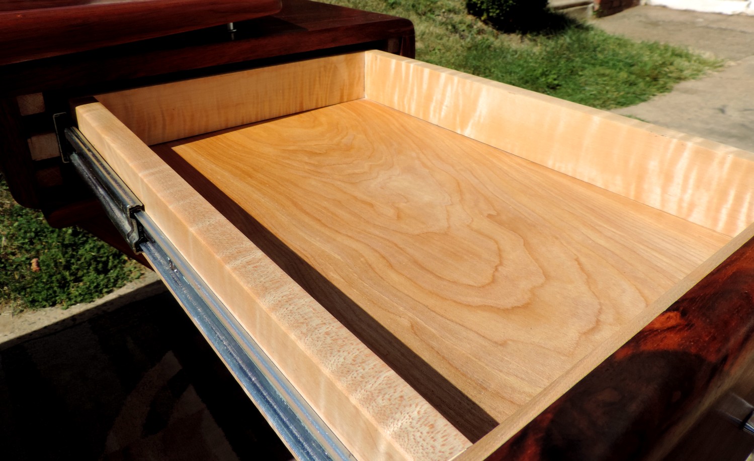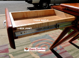 Z-DESK in bori wood made the drawers today and clear coated the legs and desk top. The drawers are made with 3/4" quilted maple and walnut dowels.