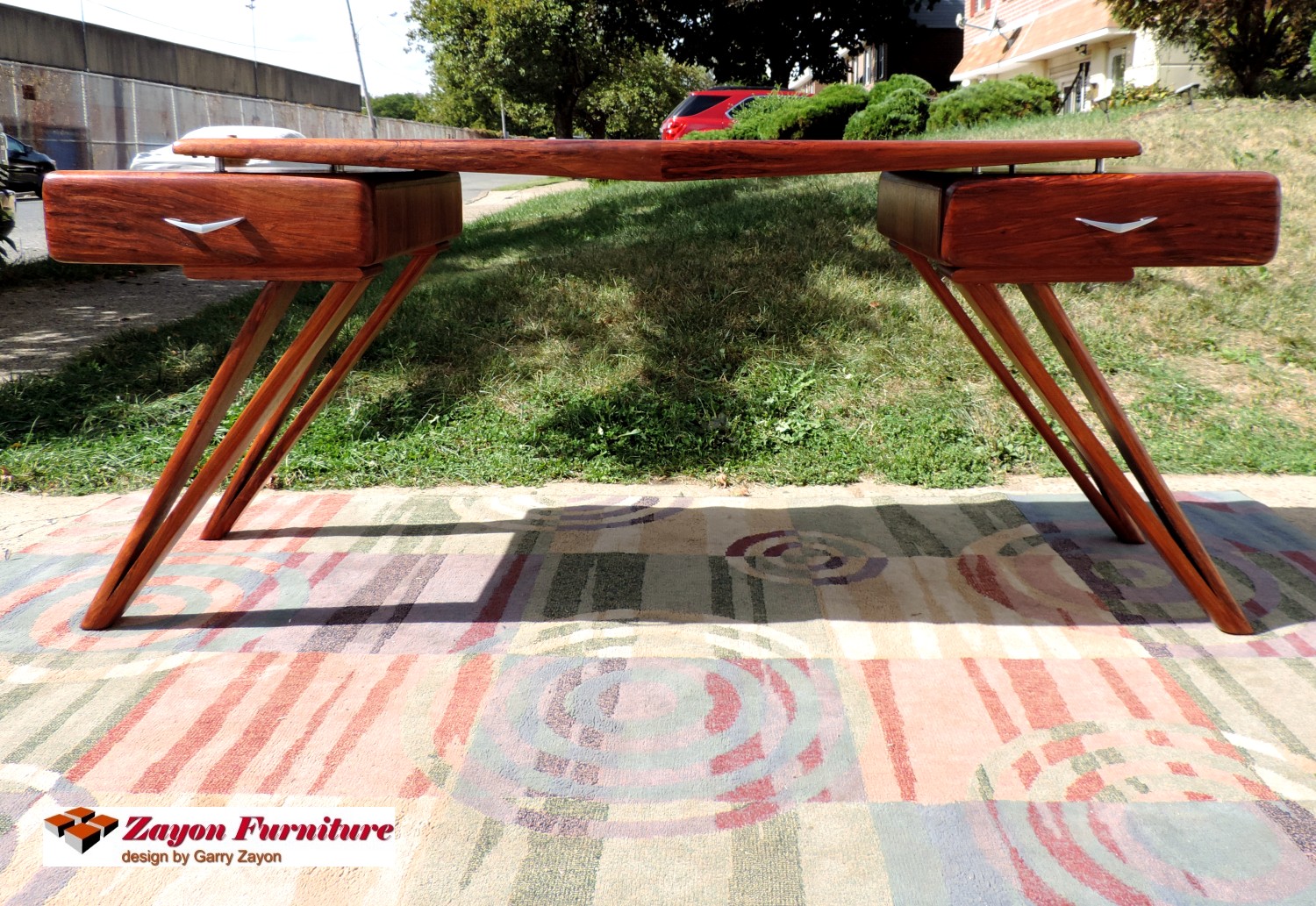 Z-DESK DESIGNED BY GARRY ZAYON BOIRE WOOD & TIGER MAPLE MID CENTURY MODERN STYLING