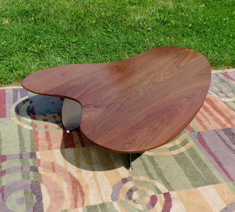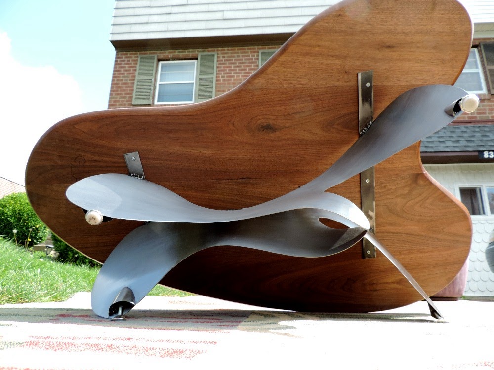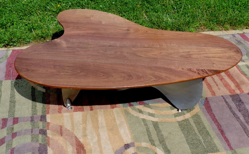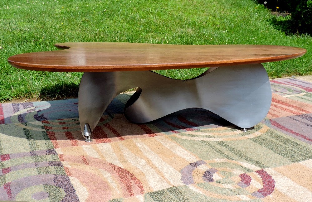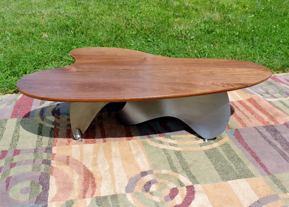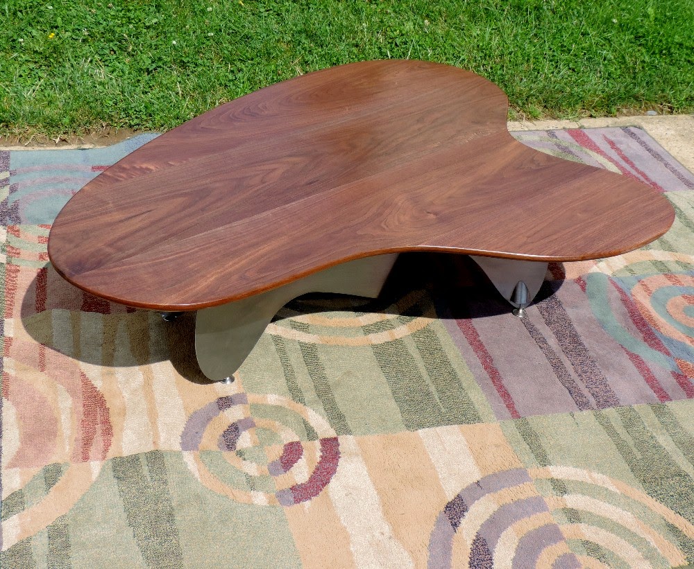 COFFEE TABLE WALNUT ABSTRACT STEEL BASE BY GARRY ZAYON MID CENTURY MODERN STYLE
