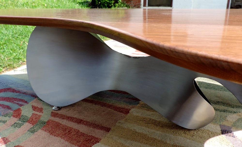 WALNUT & STEEL ABSTRACT BASE COFFEE TABLE by Garry Zayon