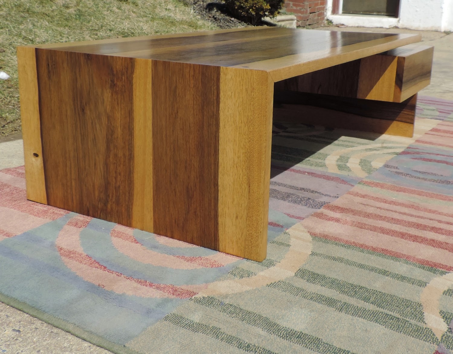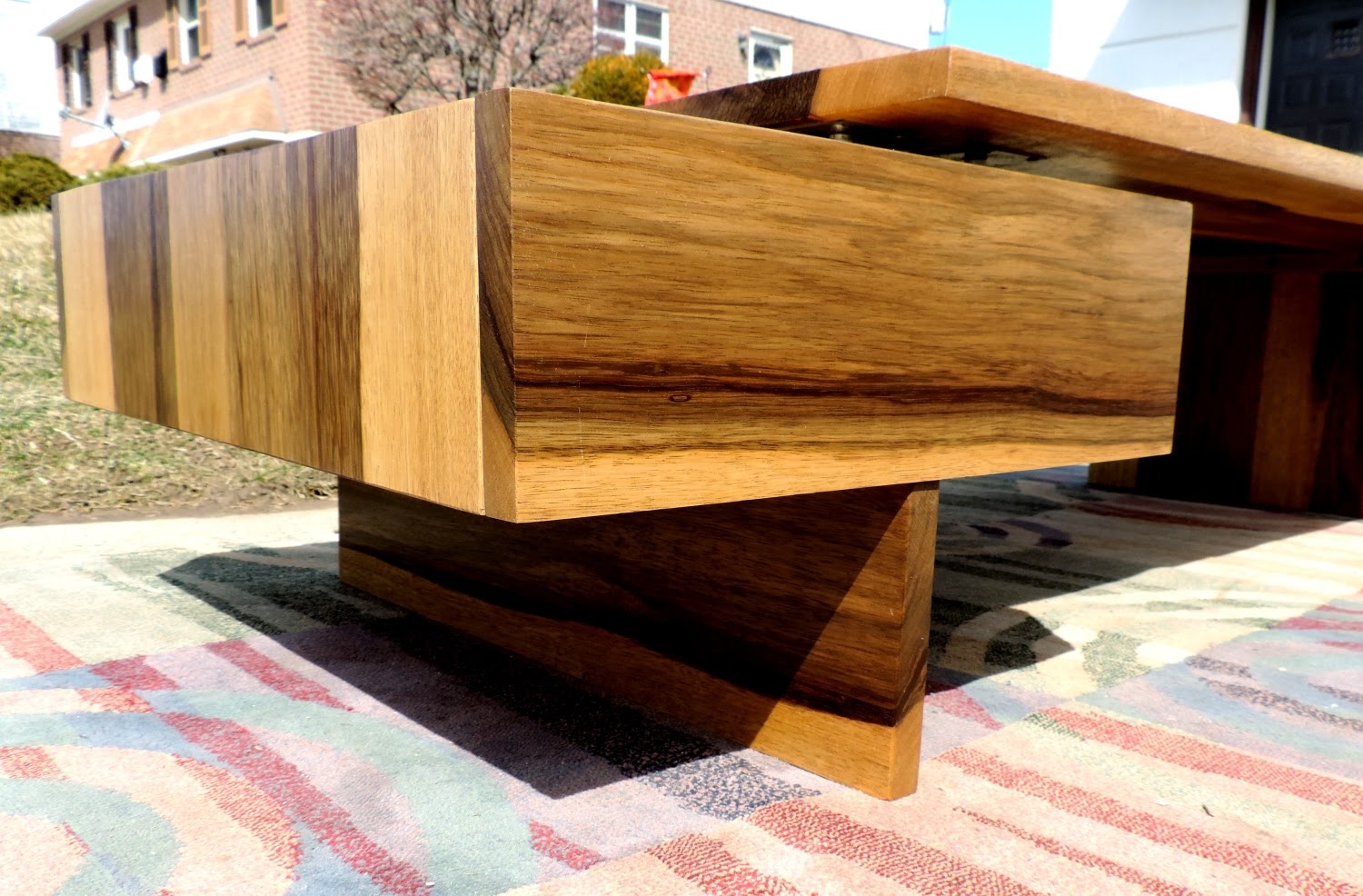Cube coffee table is finished in solid black limba wood. I love the wood grain on this.