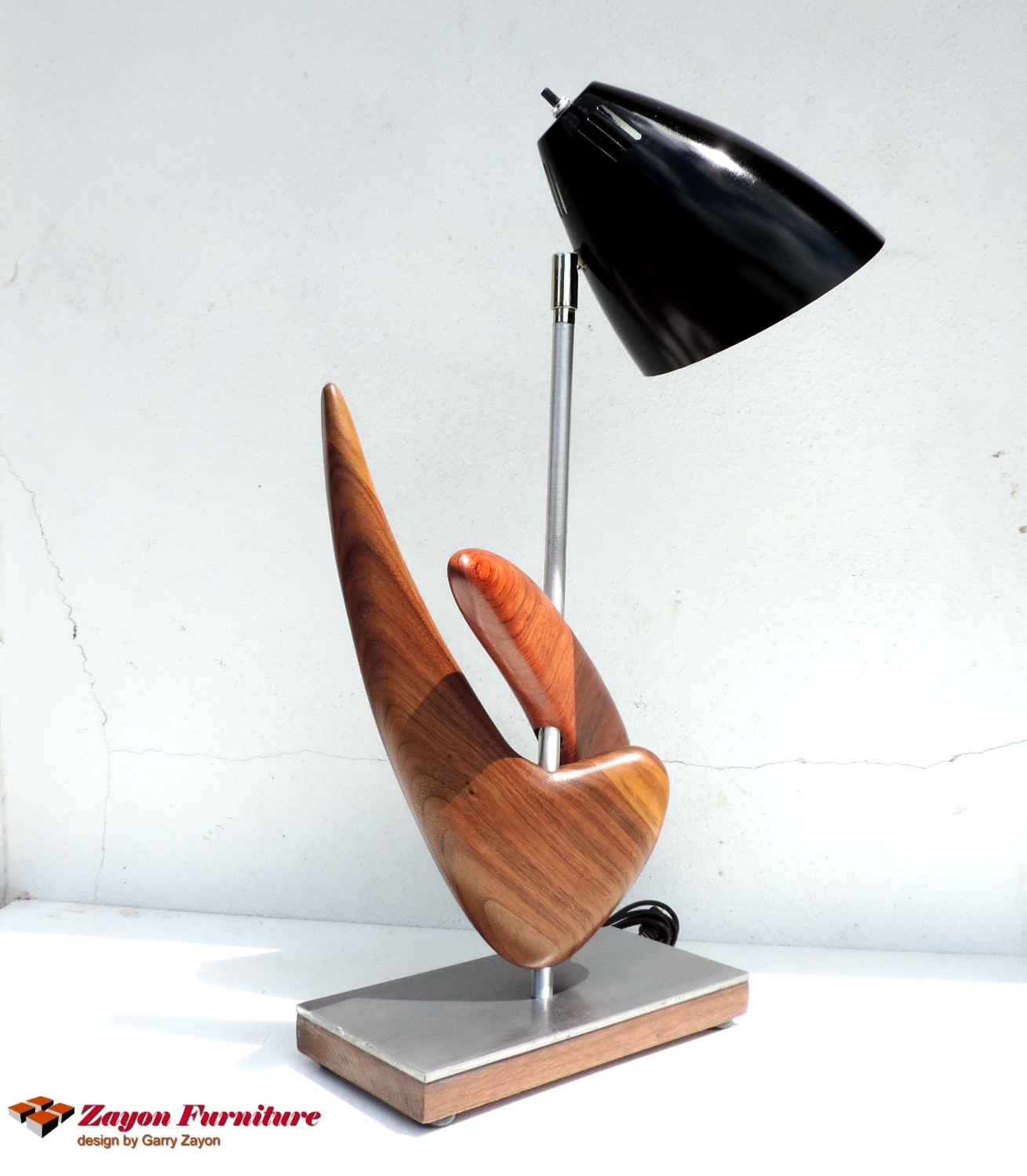 ATOMIC ABSTRACT DESK LAMP WALNUT SCULPTURE BY GARRY ZAYON